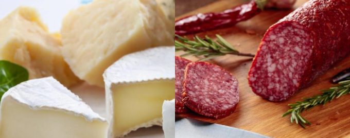 তালিকায় পনির এবং সসেজ রয়েছে।